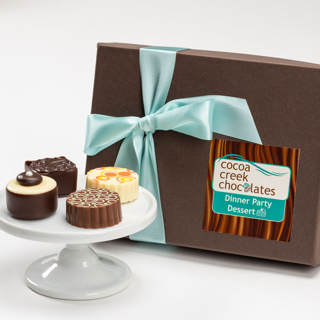 Dessert is a magical thing. Coming at the end of a meal, it is surrounded by longing, dreaming, anticipation. But really, isn’t the best part of being a grown-up that you don’t have to wait for dessert? Inspired by our favorite sweet finales to serve friends and family, these chocolates deserve to be savored before the meal! (Go ahead, we won’t tell.) We’ve chosen pieces that have an enchanting story to tell, featuring characters including a French chef, an Australian opera singer, an Italian noblewoman, and, of course, Audrey Hepburn. Because a dinner party is so much more fun when it’s filled with tasty tidbits of adventure, intrigue, comedy and drama. Dark Chocolate Soufflé Truffle, Pêche Melba Truffle, Peanut Butter Pie Truffle, Profiterole Truffle