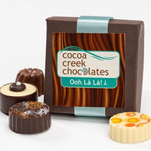 Say “Oui!” to this decadent assortment of truffles with délicieux centers made from premium French chocolate, rich cream and a dose of “Je ne sais quoi.” When it comes to sweet treats, the French clearly know what they’re doing. Fruit, chocolate, cream, pâte à choux pastry and, of course, champagne are central to the French culinary experience and form the inspiration for these petits bijoux. This collection will make you feel like you’re sitting in an adorable little chocolaterie on the Left Bank while Jean-Pierre lovingly serves you the shop’s most exquisite edible jewels. Hermès bag optional. Profiterole Truffle, Pêche Melba Truffle, Champagne Truffle, Noisette Crème Truffle